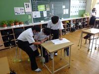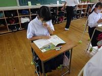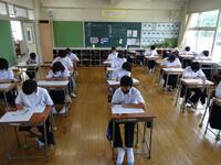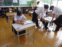 期末テスト2日目、1年生は初めての英語のテストになりました。生徒は、テスト前の休み時間に英語の見直しを意欲的に行っていました。テスト本番では、リスニングの問題に挑戦するなどしていました。