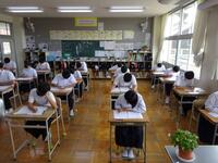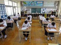 いよいよ期末テストが始まりました。全クラスとも一生懸命に問題を解く姿が見られました。対策を十分に行って受験できたのかと思います。明日、2教科で終了です。今日の家庭学習も頑張りましょう。