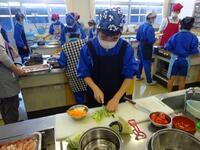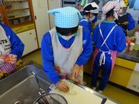 本日の1年生の家庭科の授業は、生徒が楽しみにしている調理実習でした。今回は、「生姜焼きと春雨スープ」でした。先生の説明を聞いたあと、生徒たちは調理に取りかかっていました。2回目の調理実習のため上手な手つきで包丁を扱う生徒がいるなどだんだんと慣れてできるようになってきています。ぜひ、家庭でも学校のレシピでお子様と一緒に作ってみてください。