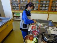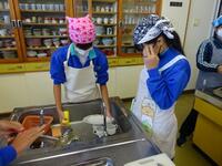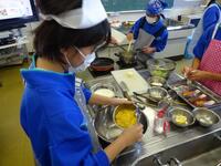 本日、1年1組、2組で調理実習を行いました。今回は「鮭のムニエルとスープ」でした。2回目の授業と言うことで生徒たちも慣れてきた様子で調理実習に取り組んでいました。試食で、食べた担任の先生も「大変おいしかった」と話していました。楽しく充実した実習になったと思います。