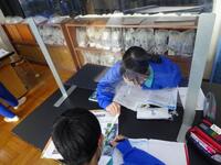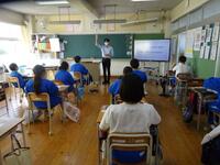 4校時は、理科の授業でした。「天気の変化」についての授業でした。天気図を使って日時を追うことで、低気圧や高気圧のの移動の方向などを話し合っていました。気圧のグラフと天気の記録を使って関係性を考察していました。