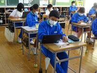 本日より、すべての先生が学力向上を目的とした授業の公開を行っています。お互いの授業を見学することで、生徒の学力向上につなげるように助言し合います。本日は1年1組の英語の授業でした。電子黒板やタブレットを使用したりしながら授業内容を深めるように工夫した授業で、生徒たちは一生懸命に英作文を考えていました。