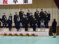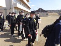 澄み渡る青空の下、田野中学校卒業式が、益子町長様、教員長様のご臨席をたまわり挙行されました。会場には、多数の保護者の皆様に参加いただき、感動に包まれた式になったと思います。コロナ禍での卒業式で1・2年生は、リモートでの参加でしたが、ここでは書ききれない感動がありました。卒業生は、凛とした態度で式に臨み、在校生に中学校3年間の思い、支えてくれた方々への感謝の思いを伝えてくれました。在校生、職員による見送りでは、みんな笑顔に溢れていました。
