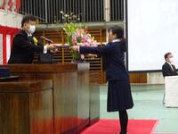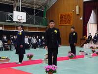 修了式後、美術の先生が退職となるため、生徒会主催で離任式を行いました。残念ながら修了式同様、放送での離任式となってしまいましたが、新生徒会長、副会長から「感謝の手紙」と「花束」を贈りました。先生には5年間、美術の授業を担当していただきました。大変お世話になりました。
