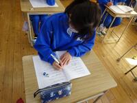 本日、1年生は「益子検定」を受験しました。総合的な学習で益子町について調べてきたまとめとして実施しています。益子町生涯学習課の職員さんがテスト監督をする本格的なものです。中身を見ると大変難しいものもあります。試験結果が楽しみですね。