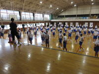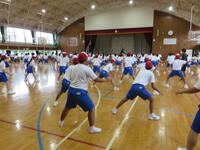 4日より、運動会の全体練習が始まりました。あいにくの天気で校庭が使用できずに、体育館で行いました。
