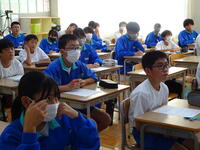 10月19日(木)6校時に薬物乱用防止教室を実施しました。真岡警察署の方の話を真剣に聞いていました。