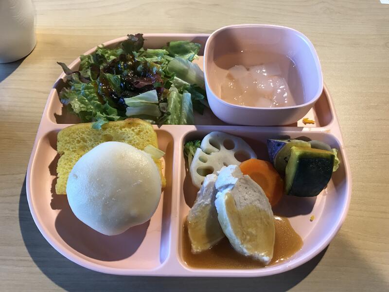米粉パンや鶏ムネに野菜たっぷりのヘルシーなプレートです。量が足りない人向けにご飯も用意されていました。