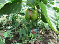 理科室前には、枝豆、ピーマン、パプリカ、ミニトマトがたくさん実っています。