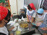 どの班も、生地にバナナやサツマイモ、チーズなどの具材を入れて工夫を凝らしていました。協力しながら楽しく活動していました。