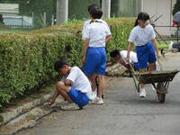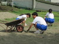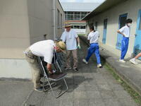 6校時、生徒会主催のクリーン作戦が行われました。今回は、急な呼び掛けにもかかわらず、保護者の方にも参加していただき、除草、運動会用椅子の整頓を行いました。ご協力ありがとうございました。