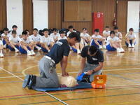 放課後、真岡消防署益子分署から6名の職員の方にご協力をいただき、教職員と2年生で、救命救急法の研修を行いました。