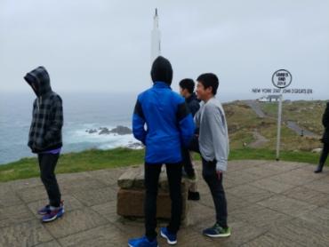 ランズエンドに来ました。あいにくの小雨の上、風がとても強い状況です。子どもたちは元気です。こちらは午後4時頃です