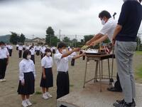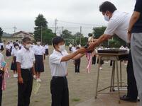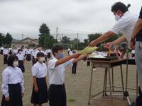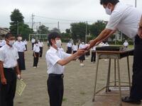 いよいよ1学期も終了します。本日は、総合体育大会陸上競技、野球、英語検定などの表彰式を行いました。生徒達は大きな声で返事をして表彰状を伝達されていました。