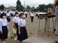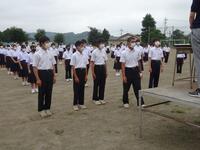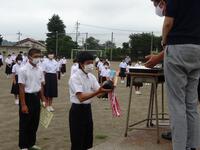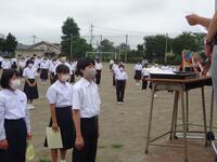 1学期の終業式が本日の4校時に行われました。コロナ禍と暑さのため、放送による終業式となりました。まずは校長先生の式辞がありました。式辞の中で、「目標を達成するためには、小さな目標の積み重ねが大切である」という話をされました。その後、各学年の代表による1学期の反省の発表がありました。3人の生徒達は、自分の作文を堂々と発表することができました。