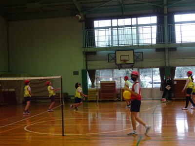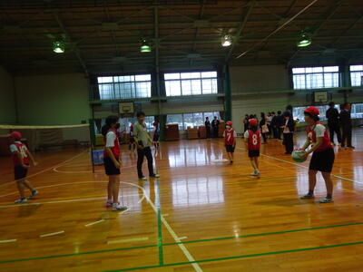 担任がサーブのコツを教え、コツを意識して打った子は上手にサーブを決めていました。
