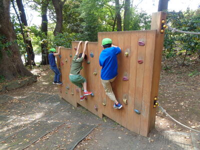 バスを使って楽寿園に向かい、到着後はみんな仲良く園内を見学したり、アスレチックに挑戦したりしました。