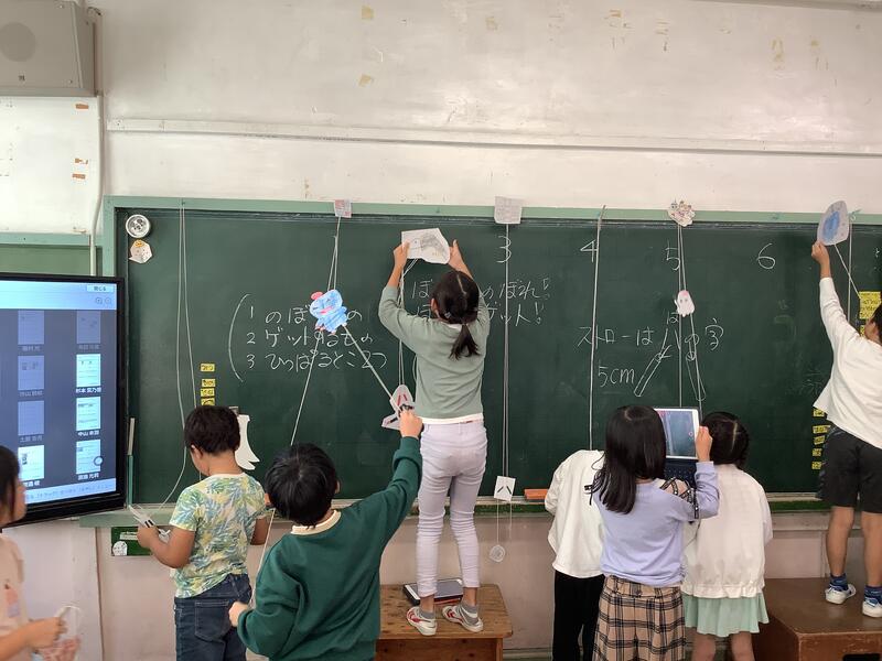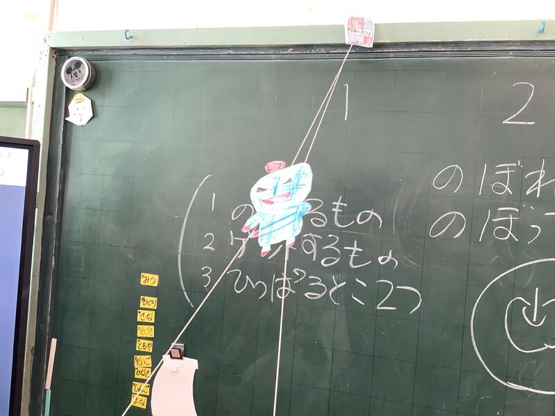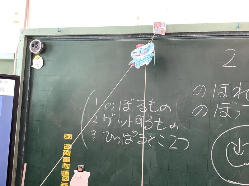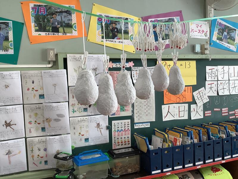 和紙を貼って、つるっつるになったはりこは、教室後方にぶら下がって乾燥中