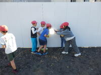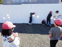 運動場にある工事のついたてがちょうど南側からの光を集めるのによい場所のようです。