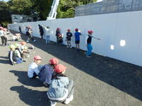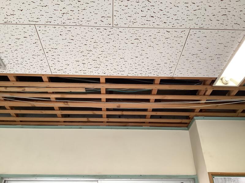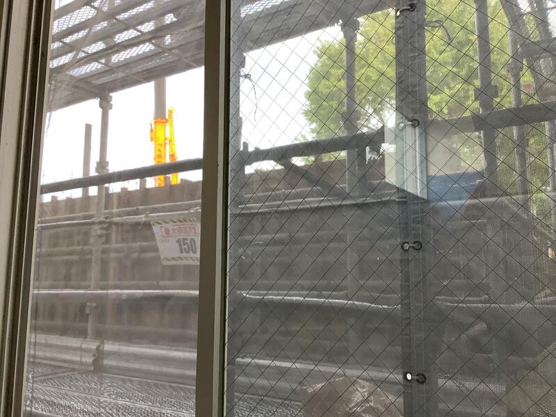 校舎の中に穴が空いたり、印が付いたりして、工事が進んでいることが見受けられます。