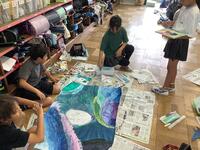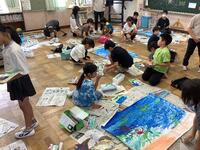 友だちと協力して、グループで1枚の絵を完成させていました。