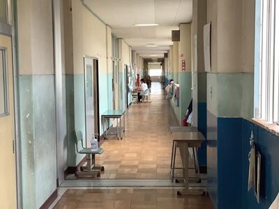 遠くの方に…という写真になってしまいましたが、担任が、通知表を一人一人に渡しながら