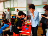 東サポの皆さんに、音読や計算カードを聞いてもらったり、解き方を教えてもらったりして