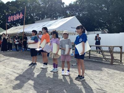 校区大会では東小児童もたくさんの競技に参加し、賞品や景品をもらって喜んでいました。