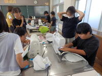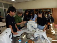 6年生は家庭科でナップサックづくりをしています。