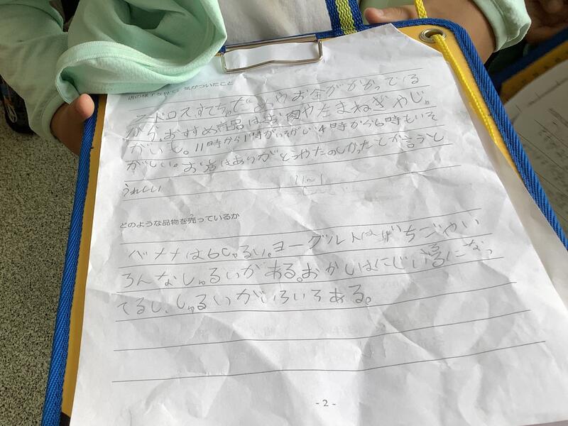 スーパーマーケットでは、お惣菜を作る場所を見させてもらったり、スーパーの中を歩いたりして、