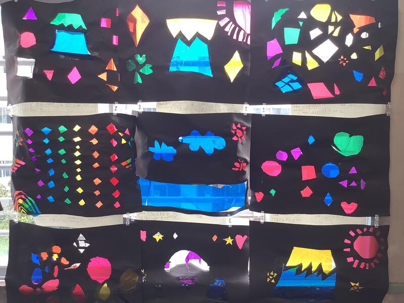 周りの黒画用紙がより、セロファンの色を際立たせていますね。
