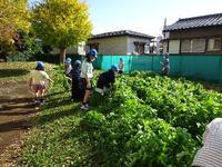 2年生が畑で大根の収穫を始めました。昨日は雨のため延期したので、その分やる気も満々です。栄養たっぷりの葉が生い茂り「どこをつかんだらいいの?」と質問するくらいの広がり具合です。力を込めて思いっきり抜くと・・・大きな真っ白い大根が!!みんな歓声をあげていました。