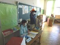 図書委員会がハロウィンムードを演出してくれています。2年生が本を借りに来ました。貸し出し手続きをする時に、合い言葉を言っていました。今日は、給食もハロウィンデザートが出ておいしかったです。