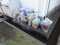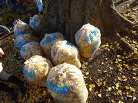 パンパンに詰まった袋を、ダストピットまで運びます。みんな力持ちです。だいぶ落ち葉が減りました。みんなありがとう!