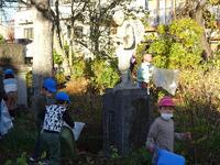 「二宮金次郎像」「本気の石碑」の周りにも落ち葉がたくさんあり、みんなで拾い集めます。意欲的に働く2年生に、像と石碑も喜びのパワーを送っていたと思います。落ち葉が詰められた袋が次々運び込まれていました。