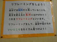 児童会が考え作成した「東っ子宣言」。通級掲示の横にも貼ってあります。リフレーミングは東っ子宣言に活かせそうです。誰もが笑顔で毎日を過ごせるよう、思いやりの心をもって接していけるといいです。