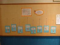 通級の掲示物が変わりました。ちびまる子ちゃんと仲間達を使った興味深い物です。ぜひ、活用して自分と友達のいいところを見付けましょう。