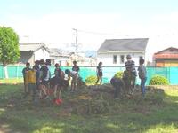 休日そして悪天候の中、保護者の皆様にお集まりいただき、PTA環境整備作業を行いました。