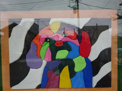 期間を決めて、各学年の作品を掲示しています。