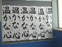 掲示板の書き初め「温かな心」も、5年生の雰囲気に合っています。一生懸命書いたことが伝わってくる文字です。