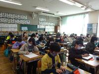 5年生が社会のテストを受けました。問題をしっかり読んで答えを記入します。みんな一生懸命がんばっていました。