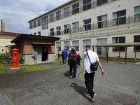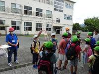 今回もふるさとガイドさんにお越しいただき、市役所周辺を案内していただくことになりました。暑さ対策として保冷剤をバンダナに包んで首に巻き、元気に出発しました。きっと学習面での収穫が多い校外学習となると思います。