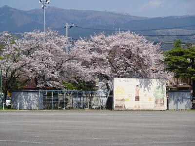 南側プールと東幼稚園の方角を見ると、桜がきれいに咲いていました。