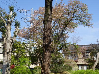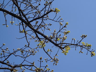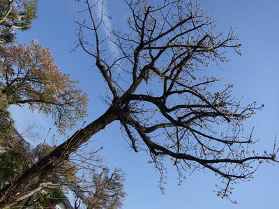 手前にある、ケヤキ(欅)の新芽もふくらんできました。