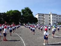 6月に入りました。朝から晴れで気温が上がっています。元気いっぱいの東っ子が運動会総練習に臨みました。