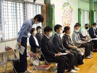 Teamsで各学級に伝えられ、教室で放送を見ました。1年間学校を支えていく上級生の話をみんなしっかりと聞いていました。
