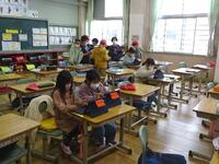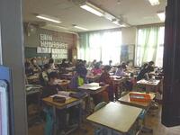 運動場が使用不可のため、2年生の教室では雨天時と同様の過ごし方をしていました。仲良く静かに過ごしています。