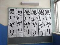 階段の踊り場には、3年生の書き初め「思いやり」が並んでいます。