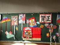 教室では、各担任が前黒板に新年の挨拶や飾りをして子供達を迎えました。
