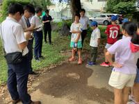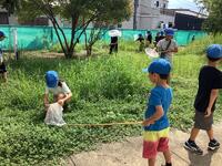 1年生がプール近くの草むらに、虫探しをしました。